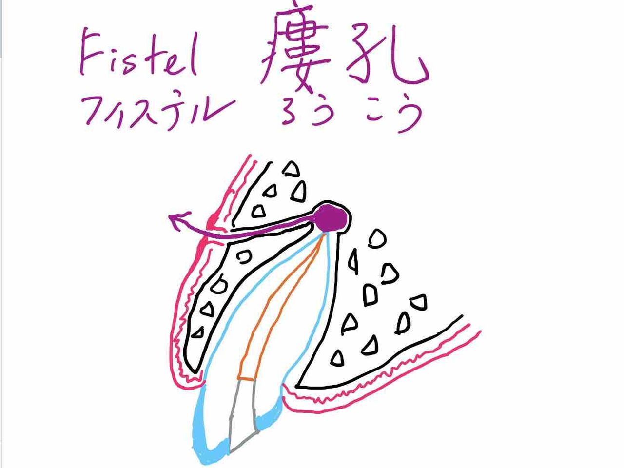 P.S.この施術の典型的な適応症として、口腔内所見に瘻孔(フィステル、Fistel)形成が見られる場合を挙げることができます。