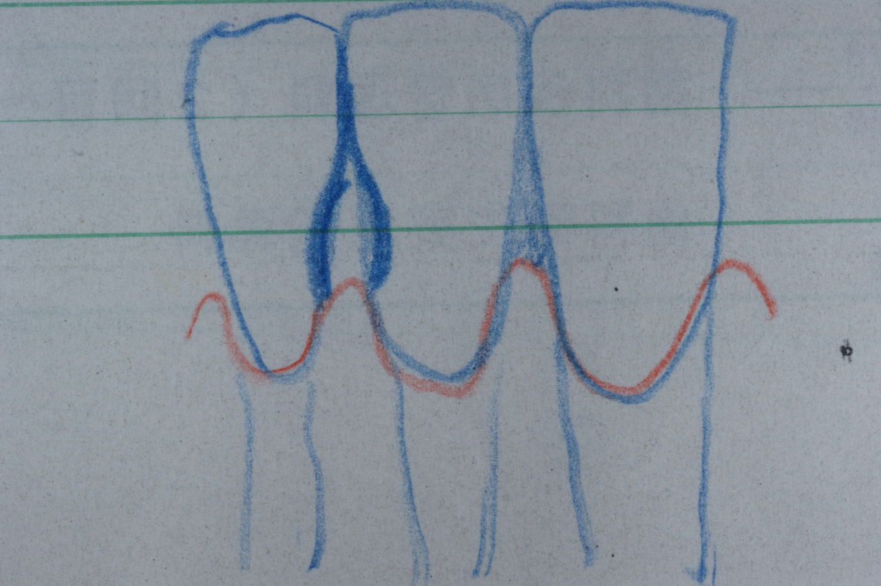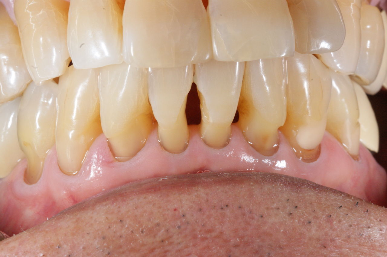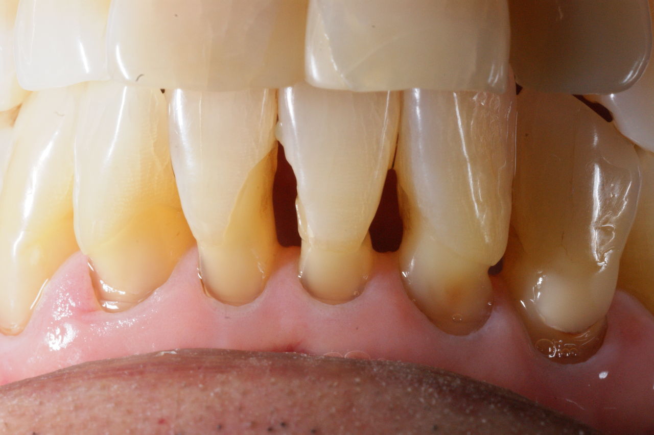 上に示したイラストと写真は見ての通り、過度で不適切な歯間ブラシによる歯の磨耗です。